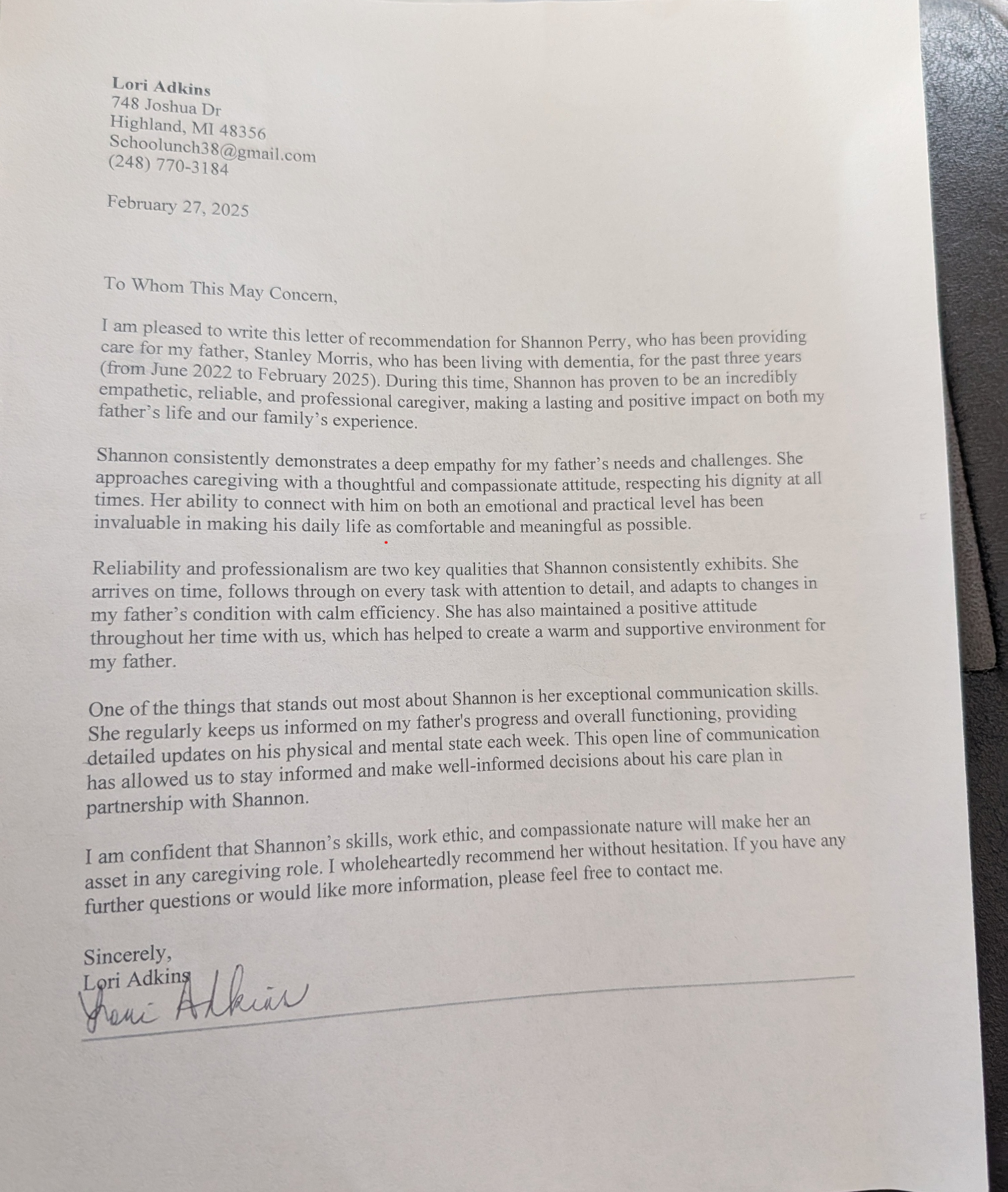 My primary focus is supporting seniors and enhancing the quality of life within our senior community. With over 20 years of experience in senior care, I provide comprehensive in-home assistance, including respite care, meal preparation, light housekeeping, personal care, transportation to appointments, and meaningful social engagement through activities such as crafts and games.